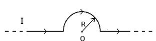 $$$ 580 Тогы бар ұзын өткізгіш өрісінің О нүктесінде өрістің В магнит индукциясы неге тең? Токтың геометриялық пішіні мен бағыты суретте келтірілген:
