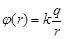 Потенциал электростатического поля, созданного точечным зарядом q или равномерно заряженным шаром, на расстоянии r от заряда (центра шара):