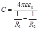 где l – длина цилиндров, из которых изготовлен конденсатор, R1, R2 – радиусы внутреннего и внешних цилиндров. Емкость сферического конденсатора: