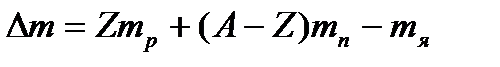 где Масса ядра не равна сумме масс, образующих ядро нуклонов. Разницу между ними называют дефектом масс