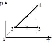 1 моль идеального одноатомного газа сначала охладили, а затем нагрели до первоначальной температуры 300 К, увеличив объем газа в 3 раза (см. рисунок). Какое количество теплоты отдал газ на участке 1 - 2?