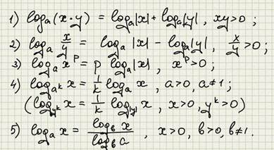 Свойства логарифма: