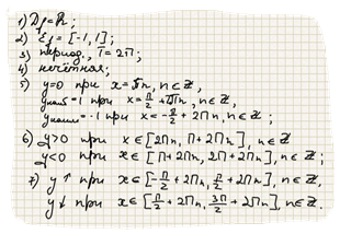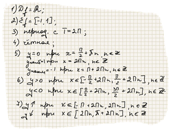 График такой функции называется синусоидой. Основные свойства функции y=sin x: