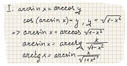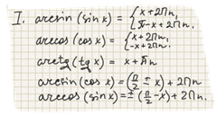 2. Обратная тригонометрическая от прямой есть бесконечное многозначное выражение, которое при несоответствии наименований может быть упрощено лишь в случае "ко-функции".