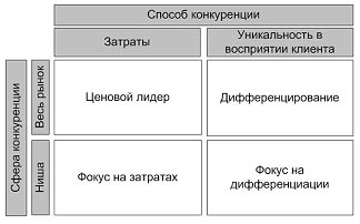 Согласно теории Портера, конкурентное преимущество возникает в результате выбора базовой стратегии, которая лучше всего соответствует конкурентному окружению компании и такой организации деятельности по развитию ценностной цепочки, которая поддерживала бы выбранную стратегию (рисунок 8) [4].