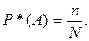 где m - число исходов, которые приводят к наступлению события A. Частотой или статистической вероятностью P*(A) события A в данной серии испытаний называется отношение числа опытов n, в которых появилось событие, к общему числу N произведенных опытов: