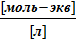 Концентрации, применяемые в объёмном анализе В объемном анализе концентрацию растворов главным образом выражают в моль-экв/л (эквивалентная концентрация Сэкв) и г/мл (титр, Т). Титр (Т) показывает, сколько граммов растворенного вещества содержится в 1 мл раствора. Например, THCL = 0,03604 мл. Это означает, что каждый миллилитр этого раствора содержит 0,03604 г НСl. Эквивалентная концентрация (Сэкв) показывает, сколько моль - эквивалентов растворенного вещества содержится в 1л (1000 мл) раствора. Так, например, 1 л 0,1н раствора серной кислоты содержит 0,1 моль-экв. H2SO4, а 1 л 5н раствора содержит 5 моль-экв. H2SO4. Число моль - эквивалентов рассчитывается по формуле nэкв= где m - масса вещества; Мэкв- молярная масса эквивалента вещества. Титр связан с эквивалентной концентрацией соотношением: Т = Молярная масса эквивалентов веществ в общем виде рассчитывается по формулам: