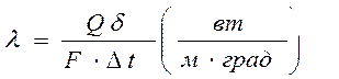 Коэффициент теплопроводности численно равен количеству тепла, проходящего через единицу поверхности в единицу времени при разности температур между стенками в один градус на единицу толщины стенки. R=