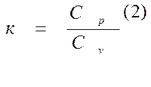 Величина К зависит от атомности газа и равна отношению теплоёмкостей при постоянном давлении Cp и постоянном объёме Cv, т.е.