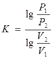 К может быть определён из уравнения (1), если для адиабатного процесса известны параметры P1 и V1 в начальном состоянии и P2 и V2 - в конечном.