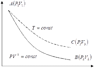где Р - давление газа, Н/м; V - удельный объём газа, м /кг; К - показатель адиабаты.