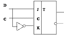 Наиболее часто в ЦИС применяют D – триггеры. Они осуществляют задержку сигнала с помощью тактирования, принимая сигнал только по разрешению тактового импульса. Его можно получить из RS триггера (и конечно же из JK)