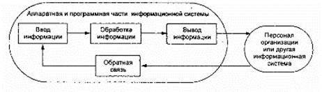 • введення інформації із зовнішніх або внутрішніх джерел; • обробка вхідної інформації і представлення її в зручному вигляді; • виведення інформації для представлення споживачам або передачі в іншу систему; • зворотний зв'язок — це інформація, перероблена людьми даної організації для корекції вхідної інформації.