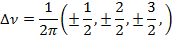 Смещения (в единицах ) зеемановских компонент спектральной линии, обусловленной переходом между термами 2P3/2→2S1/2 в слабом магнитном поле, равны