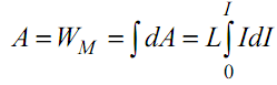 где U – напряжение на источнике тока. . Левая часть полученного равенства есть энергия, отдаваемая источником ЭДС. Первый элемент правой части – тепловая энергия по закону Джоуля – Ленца. Второй элемент правой части может быть только энергией, запасаемой в индуктивном элементе цепи, т.е. энергией магнитного поля или эквивалентной ей работой, затрачиваемой на увеличение сцепленного с контуром магнитного поля Поэтому Если проинтегрировать последнее выражение по току в пределах от 0 до I, то получим работу, эквивалентную энергии магнитного поля в индуктивном элементе при токе I: