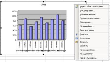 Редагування діаграм Ехсеl має засоби для редагування елементів побудованих діаграм. Для редагування діаграм цей елемент необхідно виділити. Для виділення елемента діаграми слід активізувати діаграму, клацнувши мишею по полю діаграми, а потім клацнути по елементу. Переміщуватись між елементами діаграми можна також за допомогою клавіш керування курсору. Виділені елементи можна редагувати (переміщувати, міняти розміри, вилучати, форматувати). Список операцій редагування індивідуальний для кожного елемента діаграми. Для редагування виділеного елемента діаграми зручно користуватись контекстним меню, яке викликається натискуванням правої кнопки миші. Це меню містить ті операції, які доступні для виділеного елемента (мал.37).