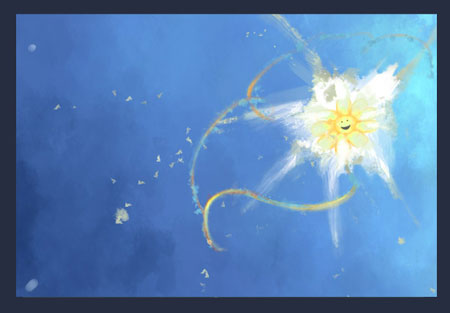 Заключеніє затем я продублював (CTRL+J) зображення і злегка підкоригував колір за допомогою Image - Adjustments - Brightness/Contrast (Зображення - Корекція - Яскравість/Контраст). Все! Тепер можна закрити Фотошоп. Сподіваюся, вам сподобався мій урок. Крок 16: Далі я зробив невелику колірну корекцію кожного елементу композиції за допомогою Image - Adjustments - Hue/Saturation (Зображення - Корекція - Колірний тон/Насиченість), додавши теплих відтінків і яскравості. Крок 15: У цьому кроці я деталізуватиму поверхню, на якій сидить кролик, і намалюю декілька яскравих маленьких квіточок. Вони мають бути жовтого кольору, як сонце. Я витратив 5 хвилин на їх створення. Ці маленькі квіти повинні виглядати так, як ніби вони летять від сонця і падають на землю. І чим далі вони віддаляються від сонця, тим сильніше вони втрачають свій колір. Крок 14: Спочатку я хотів додати і сонце, але потім зрозумів, що не можу намалювати ці два елементи в одному місці. Саме тому я і вирішив їх об'єднати. Также хочу звернути вашу увагу на те, що кожен елемент повинен знаходитися на окремому шарі. Так вам простіше вноситиме зміни при необхідності. Крок 13: Я хочу додати всміхнену квітку в правій верхній частині зображення, щоб додати радісного настрою малюнку. Форма квітки не така важлива, головне, щоб квітка була забавною і нагадувала сонце. Крок 11: Я відобразив кролика по горизонталі. Це старий трюк, завдяки якому можна побачити свої помилки.