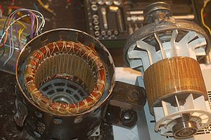 Обертове магнітне поле, перетинаючи провідники намотування, наводить на них ЕРС, пропорційна швидкості обертання поля (е = - В/V). Під дією ЕРС в провідниках протікає струм. При взаємодії струму з обертовим магнітним полем створюється сила, прикладена до провідників. Сума дій сил створює обертовий момент на валу двигуна. Двигуни з фазним ротором використовуються при забезпеченні плавного пуску та регулювання частоти обертання. Основні параметри двигуна: потужність (кВт); частота обертання (об/хв); ковзання (%); коефіцієнт потужності; ставлення максимального обертального моменту до номінального; ставлення початкового пускового обертаючого моменту до номінального; відношенню мінімального обертального моменту до номінального; відношенні початкового струму пуску до номінального; маса двигуна (кг), частота струму (Гц). 3. З'єднання обмоток статора, швидкість обертання ротора