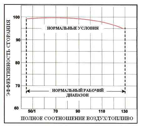 Рис. 4.8. Эффективность сгорания и соотношение воздух/топливо