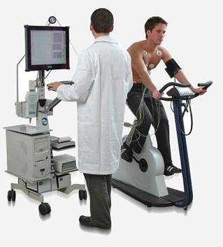 Велоэргометрия – проба с дозированной физической нагрузкой с одномоментной регистрацией ЭКГ, выполняемая для выявления скрытой коронарной недостаточности, преходящих нарушений ритма и установления индивидуальной переносимости больного физической нагрузки. Для проведения велоэргометрии на тело пациента накладываются электроды и манжета для измерения артериального давления. До подачи физической нагрузки врач измеряет у пациента артериальное давление и снимает ЭКГ (ЭКГ в покое). Затем задается определенная физическая нагрузка (крутить педали велотренажера), которая постепенно увеличивается. Физическая нагрузка подбирается индивидуально с учетом возраста пациента и его состояния. Во время проведения велоэргометрии больного просят сообщать врачу о своих ощущениях или появлении болей. Исследование прекращают при достижении определенной частоты сокращений сердца или в связи с изменениями на ЭКГ, появлением боли или усталости пациента. Снятие ЭКГ и измерение артериального давления проводится еще 5-10 минут после прекращения исследования для оценки периода восстановления.