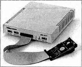 Одним из главных обстоятельств, затрудняющих отладку микроконтроллер пых систем, является недоступность внутренних элементов микросхемы микроконтроллера для прямого контроля и воздействий во время работы программы. Контроль и воздействия можно осуществлять лишь косвенно, путс м передачи информации от внутренних элементов схемы во внешнюю среду (при контроле) и извне во внутренние элементы (при управлении) с помощью специальных подпрограмм по факту появления некоторых событии. Вследствие сложности микроконтроллера, а также в связи с необходимостью такой реализации подпрограмм, при которой не нарушается ход основного вычислительного процесса, для реализации указанных действий требуются иачительные временные и программно-аппаратные ресурсы системы. Для преодоления указанных трудностей применяются внутрисхемные эмуляторы. При использовании внутрисхемного эмулятора микроконтроллер извлекается из панели своего разъема и на его место с помощью кабеля подсоединяется аппаратура внутрисхемного эмулятора. Внутрисхемный эмулятор полностью шменяет микроконтроллер отлаживаемой системы, сохраняя при этом доступ пользователя ко всей информации о внутреннем состоянии контроллера и его памяти посредством инструментальной ПЭВМ (рис.). Внешний вид платы микроконтроллерной системы с извлеченным МК и подсоединенным через его разъем внутрисхемным эмулятором показан на рис... Существуют варианты исполнений эмулятора в виде платы расширения инструментальной ЭММ