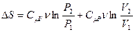 Изменение энтропии можно выразить и через другую пару параметров состояния – давление и объём. Для этого нужно выразить температуры начального и конечного состояний из уравнения состояния идеального газа через давление и объём и подставить в (9-50):