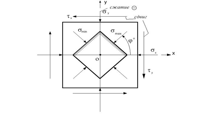 Для данной схемы плоского напряженного состояния в элементе детали необходимо определить: 1. Главные напряжения и положение главных площадок. 2. Максимальное касательное напряжение. 3. Относительные деформации. 4. Удельную потенциальную энергию деформации. Материал детали – сталь. После определения главных площадок и главных напряжений их поло жение и направление действия – нанести на заданную схему.
