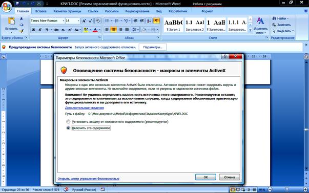 Рис. 9. Разрешение запуска активного содержимого в режиме отключения макросов с уведомлением