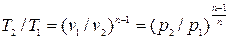 Из уравнений взаимосвязи между параметрами p, T, v в политропном прцессе: