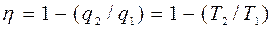 Это допустимо, если под q2 понимать не абсолютное количество теплоты, отданной рабочим телом холодильнику с температурой Т2, а его алгебраическое значение, которое по списку отрицательно. Отношение q/T называется приведенной теплотой. Из уравнения (6.1) следует, что в обратимом цикле Карно алгебраическая сумма приведенных теплот равна нулю.