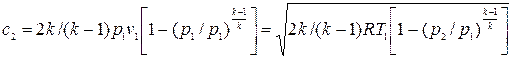 Скорость газа на входе в сопло обозначим через c1. Будем считать, что давление газа на выходе из сопла p2 равно давлению среды, в которую вытекает газ. В соответствии с уравнением (13.17)