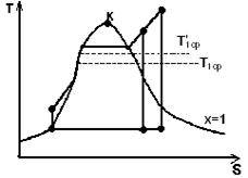 Рис. 28.3 б) Влияние начальной температуры пара Из рис. 28.4. видно, что η цикла Ренкина с ростом температуры перегрева пара при одном и том же давлении увеличивается, т.к. возрастает средняя температура подвода теплоты в цикле.
