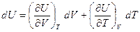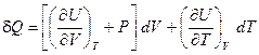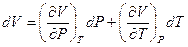 Чтобы избавиться от dV, объём также представим как функцию Р и Т: V = f (P,T). Тогда: