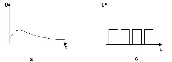 Рис.5.2. Две формы предоставления информации в машинах: а- аналоговая; б- цифровая импульсная. Цифровые вычислительные машины (ЦВМ) - вычислительные машины дискретного действия, работают с информацией, представленной в дискретной, а точнее, в цифровой форме. Аналоговые вычислительные машины (АВМ) - вычислительные машины непрерывного действия, работают с информацией, представленной в непрерывной (аналоговой) форме, т.е. в виде непрерывного ряда значений какой-либо физической величины (чаще всего электрического напряжения) Аналоговые вычислительные машины весьма просты и удобны в эксплуатации; программирование задач для решения на них, как правило, нетрудоемкое; скорость решения задач изменяется по желанию оператора и может быть сделана сколь угодно большой(больше, чем у ЦВМ), но точность решения задач очень низкая (относительная погрешность 2-5 %). На АВМ наиболее эффективно решать математические задачи, содержащие дифференциальные уравнения, не требующие сложной логики. Гибридные вычислительные машины (ГВМ) - вычислительные машины комбинированного действия, работают с информацией, представленной и в цифровой, и в аналоговой форме; они совмещают в себе достоинства АВМ и ЦВМ. ГВМ целесообразно использовать для решения задач управления сложными быстродействующими техническими комплексами. Наиболее широкое применение получили ЦВМ с электрическим представлением дискретной информации - электронные цифровыевычислительные машины, обычноназываемые просто электронными вычислительными машинами (ЭВМ), без упоминания обихцифровомхарактере. Классификация ЭВМ по этапам создания По этапамсозданияи используемой элементнойбазе ЭВМ условно делятсяна поколения: 1-е поколение, 50-е гг.: ЭВМ на электронных вакуумных лампах; 2-е поколение, 60-е гг.: ЭВМ на дискретных полупроводниковых приборах (транзисторах); 3-е поколение, 70-е гг.: ЭВМ на полупроводниковых интегральных схемах с малой и средней степенью интеграции (сотни - тысячи транзисторов в одном корпусе); Примечание. Интегральная схема - электронная схема специального назначения, выполненная в виде единого полупроводникового кристалла, объединяющего большое число диодов и транзисторов. 4-е поколение, 80-е гг.: ЭВМ на больших и сверхбольших интегральных схемах - микропроцессорах (десятки тысяч - миллионы транзисторов в одном кристалле); 5-е поколение, 90-е гг.: ЭВМ с многими десятками параллельно работающихмикропроцессоров,позволяющих строить эффективные системы обработки знаний; ЭВМ на сверхсложных микропроцессорах с параллельно-векторной структурой, одновременно выполняющих десятки последовательных команд программы; 6-е и последующие поколения: оптоэлектронные ЭВМ с массовым параллелизмом и нейронной структурой - с распределенной сетью большого числа (десятки тысяч) несложных микропроцессоров, моделирующих архитектуру нейронных биологических систем. Каждое следующее поколение ЭВМ имеет по сравнению с предшествующим существенно лучшие характеристики. Так, производительность ЭВМ и емкость всех запоминающих устройств увеличиваются, как правило, больше чем на порядок. Классификация ЭВМ по назначению По назначению ЭВМ можно разделить на три группы: универсальные (общегоназначения),проблемно-ориентированные и специализированные (рис. 5.3).