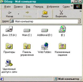Рис.12.20. Окно Проводника, имеющее вид Web-страницы На рис. 12.21 представлено окно Проводника лишь с панелью содержимого папки.