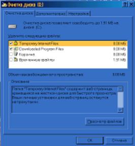 Временные файлы - палка Temp для хранения временных файлов, которые создаются приложениями Windows в процессе работы. Эти файлы обычно автоматически удаляются приложениями, но могут остаться при возникновении ошибки в приложении. Автоматическая очистка диска включается установкой флажка около соответствующего параметра на вкладке Настройка (см. рис > 12.29, 6) окна настройки параметров.