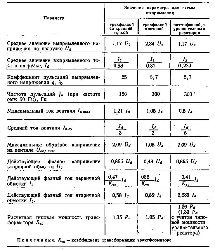 Таблица 2 – Свойства трехфазных схем выпрямления
