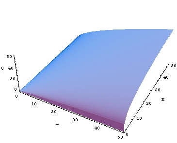 где Если сумма показателей степени ( Если сумма показателей степени больше единицы, функция отражает возрастающую отдачу, а если она меньше единицы, — убывающую.Изокванта, соответствующая функции Кобба — Дугласа, будет выпуклой и «гладкой». Впервые производственная функция была рассчитана в 1920-е годы для обрабатывающей промышленности США, в виде равенства: