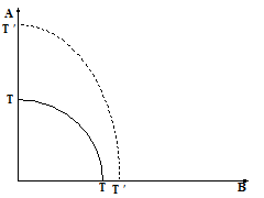 Пусть товар А - трудоинтенсивный и количество труда в экономике возрастает (см.предыдущую ситуацию). ТТ - кривая трансформации до экономического роста.