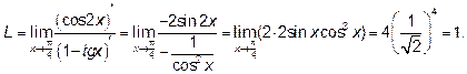 где буква Л над знаком равенства означает применение правила Лопиталя.