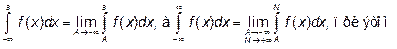 Это несобственный интеграл. Если конечный предел в правой части существует, то несобственный интеграл называется сходящимся, а функция f(x) - интегрируемой на Интеграл