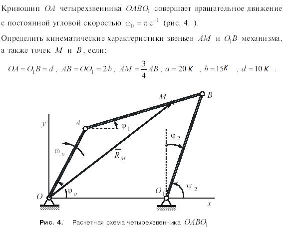 Вариант24 Задание 1. Изучить возможности использования пакета MathCAD для реализации инженерных расчетах посредством решения следующей задачи. Задача: «Определение кинематических характеристик звеньев и точек шарнирного четырехзвенника».