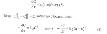 Егерде (5) және (6) теңдеулерді интегралдап, екінші ретті реакциялардың кинетикалық теңдеуін төменгі түрге келтіреміз: