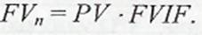 Процес, за якого при заданих значеннях PV і r потрібно знайти величину майбутньої вартості інвестованих коштів до кінця певного періоду часу (я), називають операцією нарощування. Для полегшення процедури знаходження показника попередньо розраховується величина множника (1 +r)" при різних значеннях r і n, при цьому використовується таблиця стандартних значень майбутньої вартості процентного фактора (множника) (FVIF - Future Value Interest Factor) У цьому разі