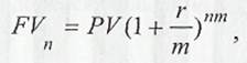 де r - річна процентна ставка, коефіцієнт; m - кількість нарахувань за рік, одиниць; n -термін вкладення грошових коштів, роки.