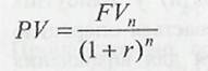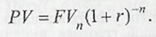 (1.2) Дана формула є оберненою до формули (2.2). Або ж теперішню вартість знаходимо шляхом поділу майбутньої вартості на процентну ставку (1 + r ) стільки разів, на скільки років ми вкладаємо гроші.