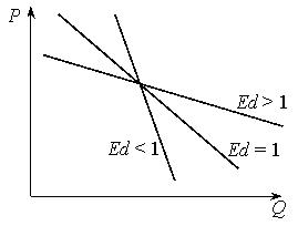 Варианты ценовой эластичности спроса: 1. ED>1, спрос эластичен. 2. ED<1, спрос неэластичен. 3. ED=1, эластичность единичная. 4. ED=0, спрос совершенно неэластичен. 5. ED=0, спрос совершенно эластичен.