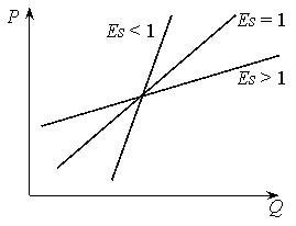 Предложение эластично, если становится, его величина изменяется на больший процент, чем цена. Допустим, что цена на товар повысилась на 5 %, вследствие чего его продажа увеличилась на 10 %. В этом случае коэффициент эластичности предложения составит: Es=10 % / 5 %=2. Предложение неэластично, если оно почти не изменяется при повышении или снижении цен (это характерно для многих товаров в краткосрочном периоде). В зависимости от полученного значения коэффициента эластичности предложения по цене, как и в случае эластичности спроса, могут быть следующие виды эластичности: 1. ES>1, предложение эластично; 2. ES<1, предложение неэластично; 3. ES=1, эластичность единичная; 4. ES=0, предложение совершенно неэластичное; 5. ES=0, предложение совершенно эластичное.