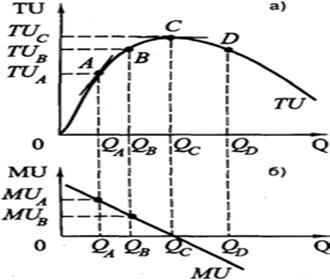 Наглядно соотношение динамики совокупной и предельной полезности показано на рисунке 4.3.