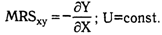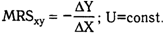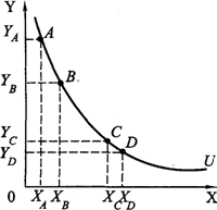 Переход от товарного набора А к товарному набору В связан с увеличением блага Х на одну единицу (XB-ХA=1), что, в свою очередь, требует сокращения блага Y на ΔY единиц (YB-YA), чтобы сохранить полезность набора В на уровне полезности набора А. С математической точки зрения формулу замещения следует записать так: